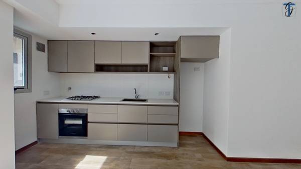 - Muebles de cocina con Bajo mesada y Alacenas en frenes melamínicos, cantos ABS. Mesadas en Cuarzo, Pileta acero inoxidable y grifería monocomando FV.
