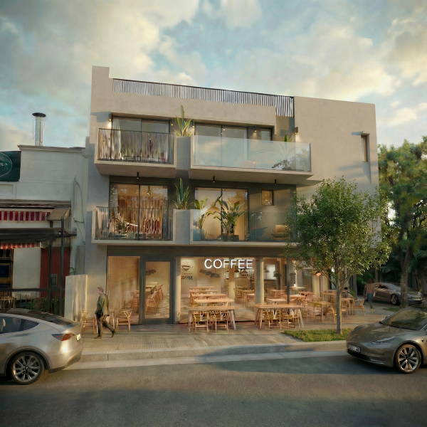 El proyecto cuenta con un amplio local comercial en planta baja, y dos pisos con departamentos de