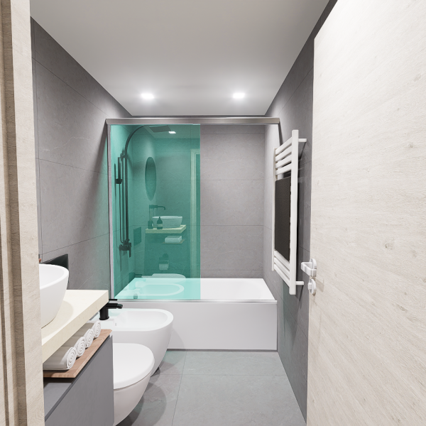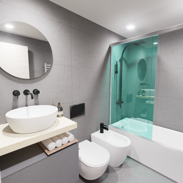 Baños y cocinas con revestimientos en porcelanato de líneas modernas en piezas de grandes dimensiones