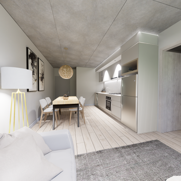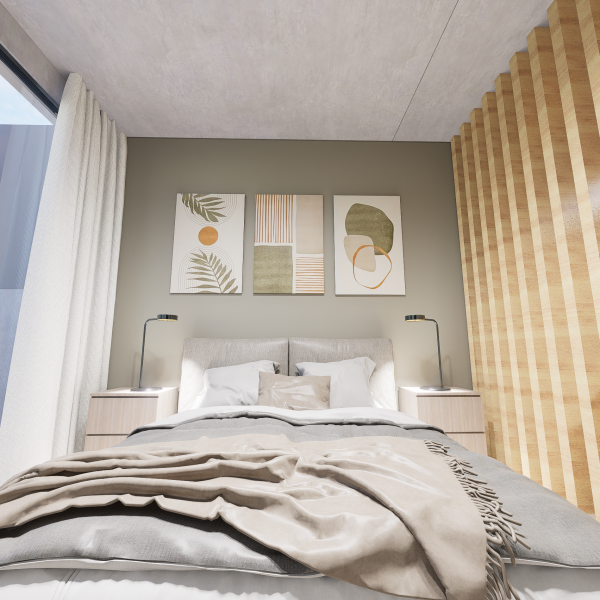 Losas de hormigón visto en estar y dormitorios